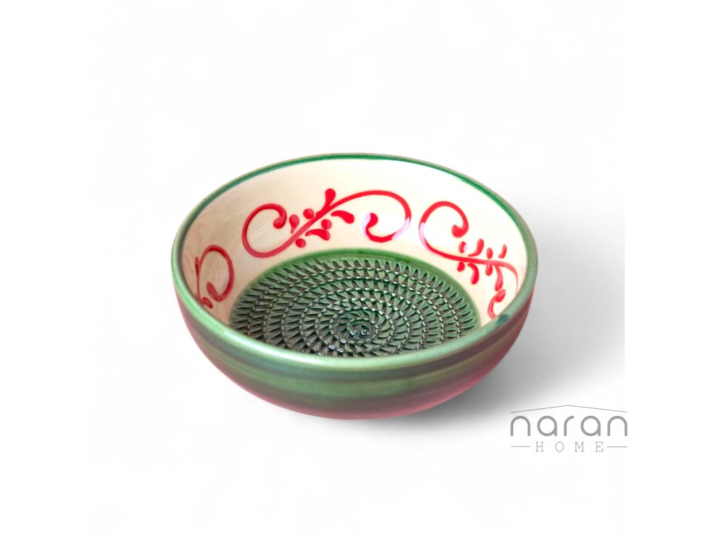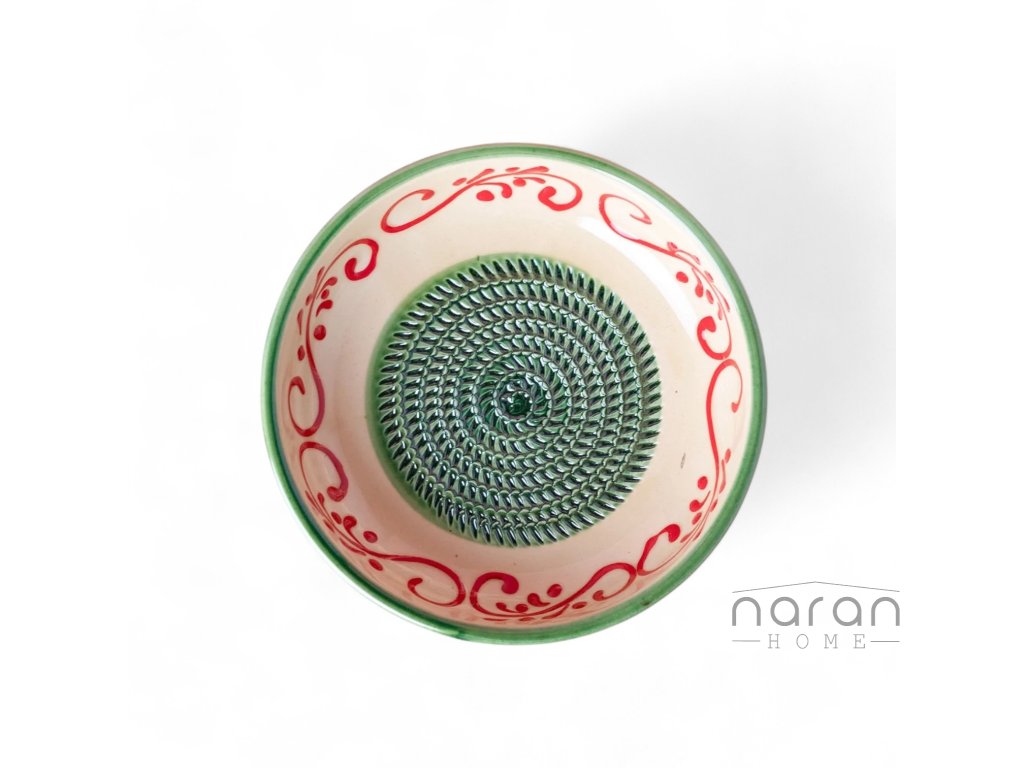 Strouhací miska ALHAMBRA v tónech krásné zelené je vyrobena z vysoce kvalitní, pevné a odolné hlíny, což z ní dělá nejen udržitelnou, ale i ekologickou volbu pro váš domov. Každý kousek je ručně vyráběn s láskou a péčí, což dodává každému produktu jedinečný charakter. Kromě toho je naše keramika plně veganská a šetrná k řemeslné výrobě.