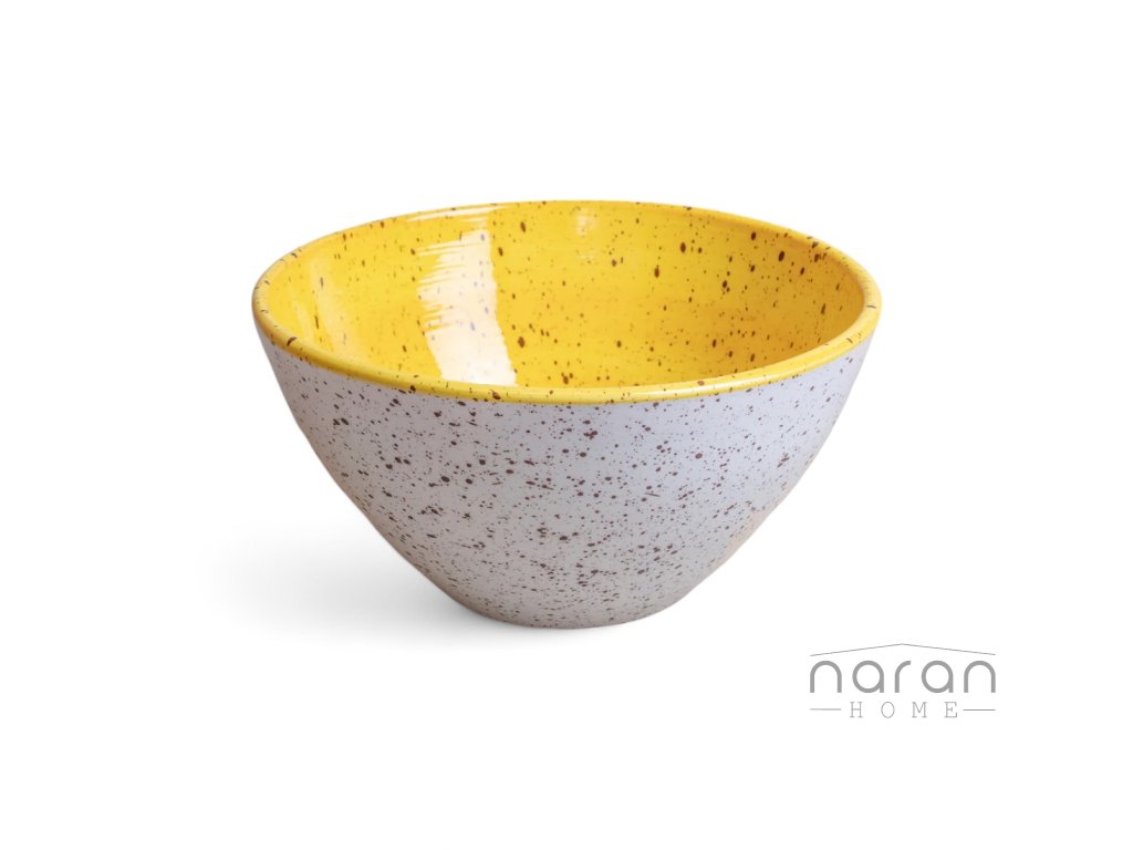 Mísa vhodná pro podávání salátů nebo těstovin v bílo žlutém zpracování rozsvítí váš stůl. Je navržena s důrazem na jemné a čisté linie, které dodávají vašemu stolu jedinečný a sofistikovaný vzhled. Je ideální pro každodenní použití i pro speciální příležitosti.