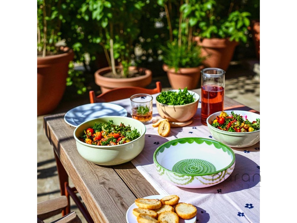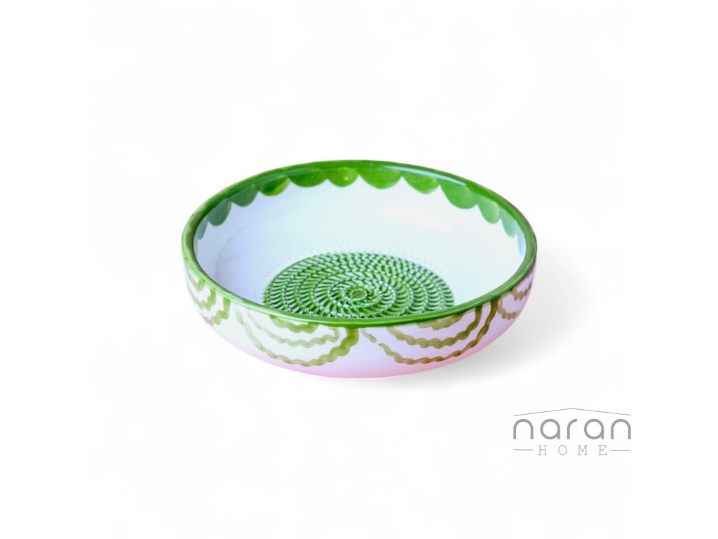 Strouhací miska RAICES v krásné zelené je vyrobena z vysoce kvalitní, pevné a odolné hlíny, což z ní dělá nejen udržitelnou, ale i ekologickou volbu pro váš domov. Každý kousek je ručně vyráběn s láskou a péčí, což dodává každému produktu jedinečný charakter. Kromě toho je naše keramika plně veganská a šetrná k řemeslné výrobě.